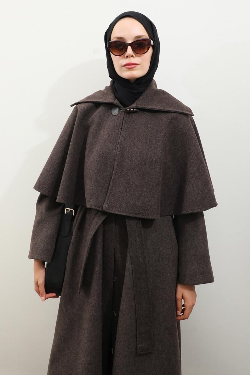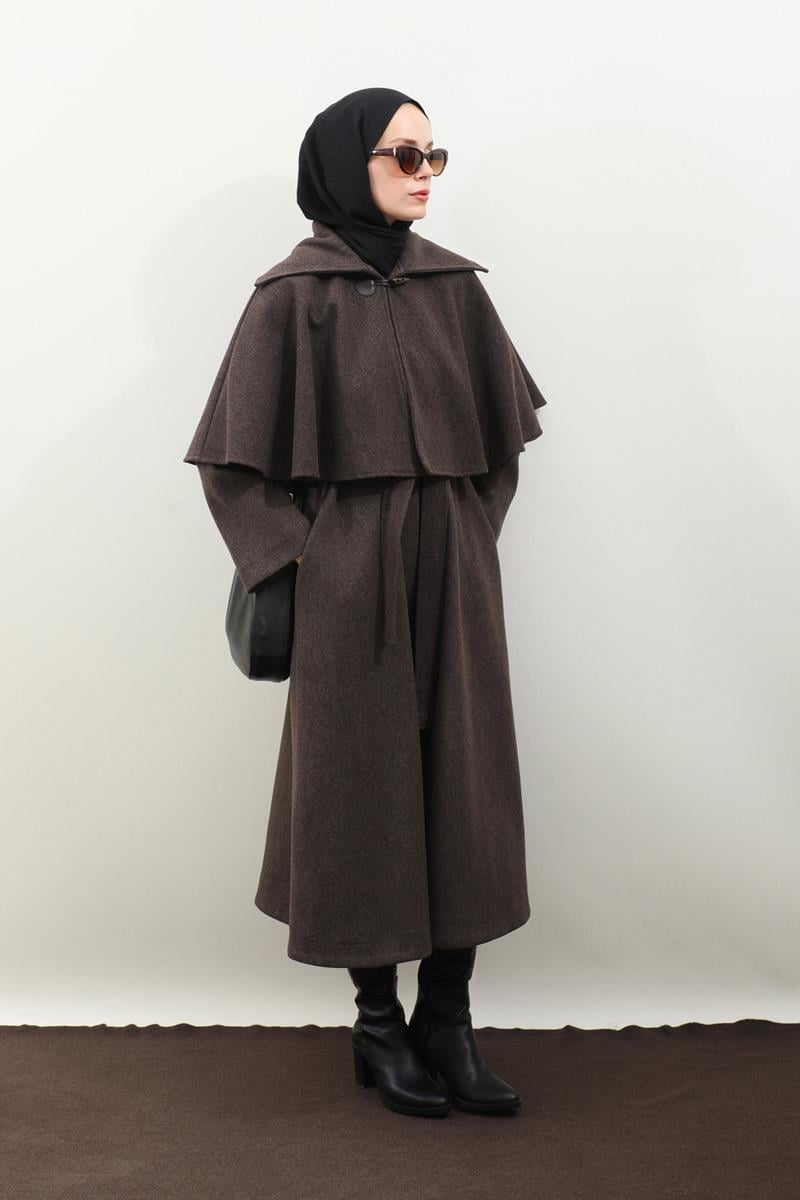 Pelerinli Kaban Kahverengi